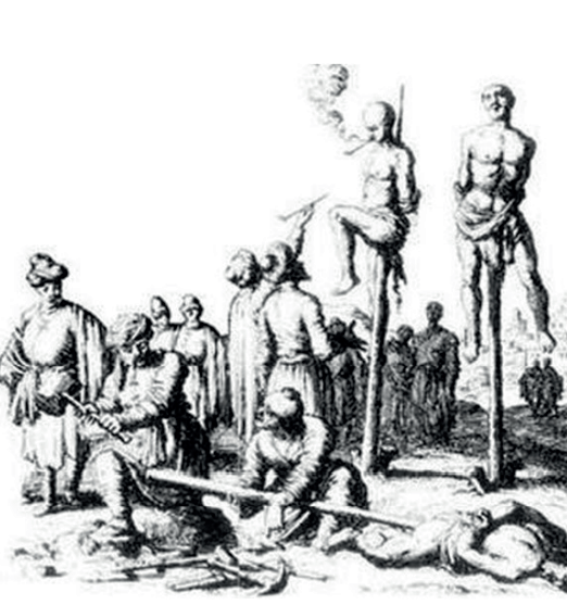 “When he moved from the camp towards the capital, he happened to fall in with a number of ‘idolaters’ (Hindus) with their women and children in clearing a road through the forest. Every infidel found in the forest was taken prisoner. He made them carry a several stakes sharpened at both ends, and when morning broke he divided these prisoners into four groups, and led one party to each gate of the four entrances to the camp. The stakes that they carried were then driven into the ground at one end and the unfortunate prisoners were impaled. Afterwards, their wives were killed and tied by their hair to these pales. Little children were massacred on the bosoms of their mothers and their corpses left there. Then, the camp was raised, and they started cutting down the trees of another forest. In the same manner, they killed their later Hindu prisoners. This is shameful conduct such as I have not known any other sovereign guilty of.”- Records of Ibn Batuta (a renowned traveler and early historian) on the worst tyrant, Ghiyatheddin when he ruled Madurai.